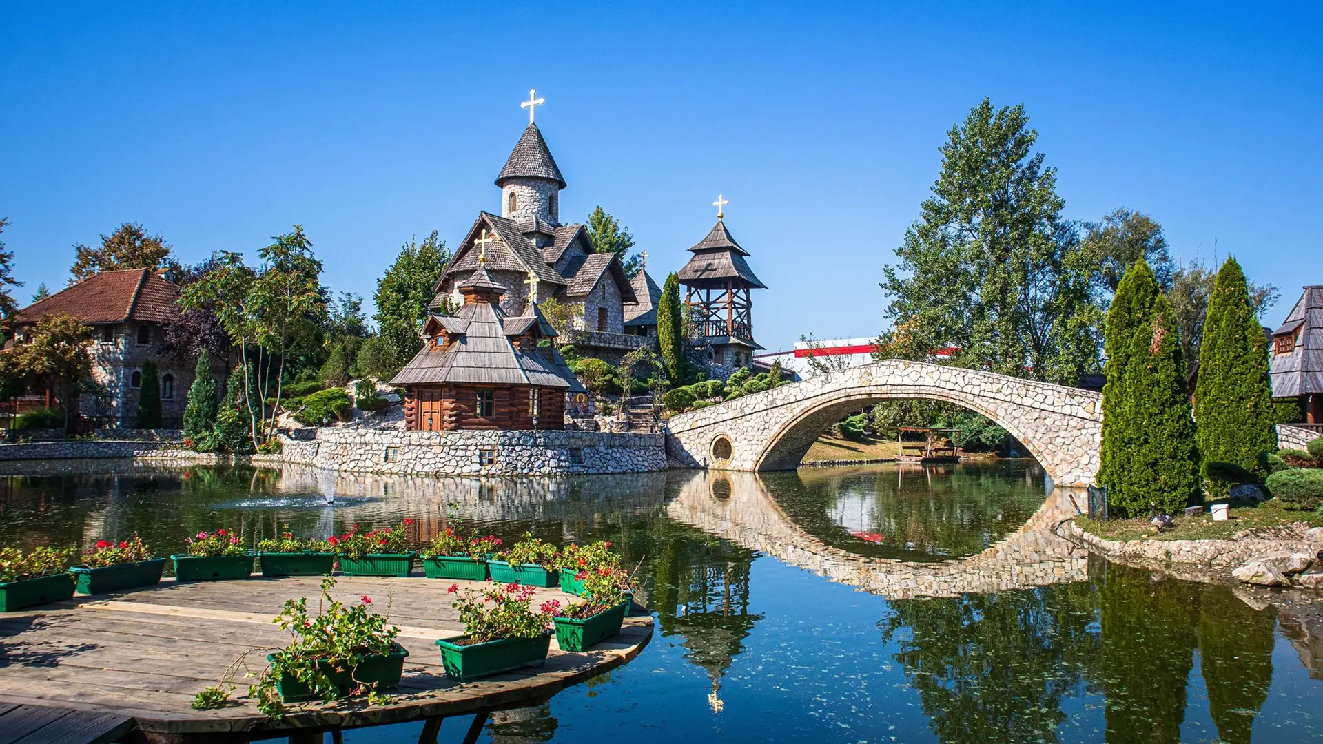 Ethno village Stanišići is located at the exit road from Bijeljina, three kilometers from Pavlovic's bridge. Outside of this time and space, it takes us back to ancestors and provokes admiration for the simplicity of the former lifestyle. Eyes and heart are being relaxed here, a human becomes generous and wise, listening to babbling a stream and watermill.